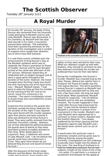 Macbeth King Duncan S Murder Newspaper Report Teaching Resources